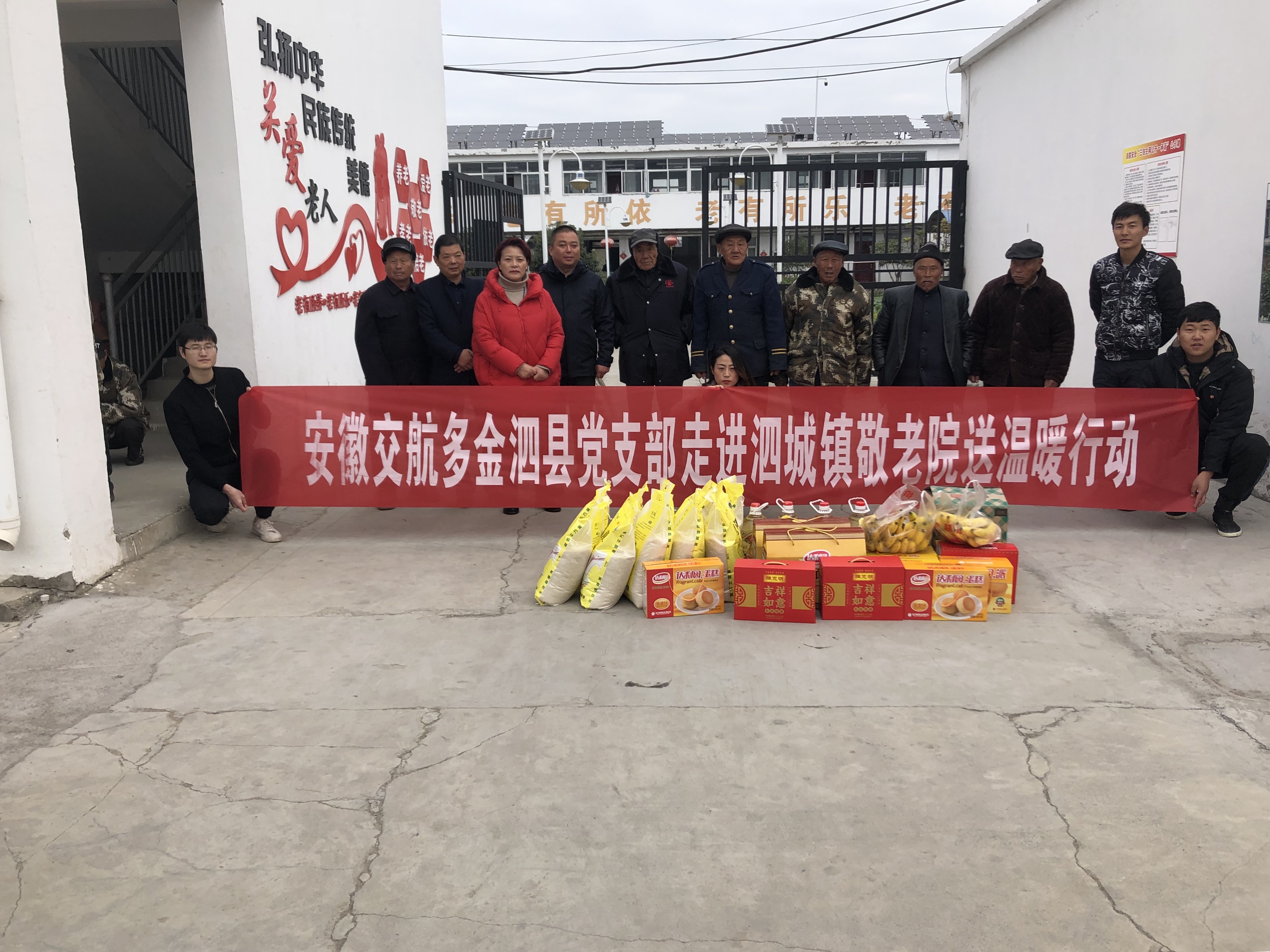2019年11月26日,安徽交航多金泗縣項(xiàng)目黨支部組織開展了“冬日送溫暖”走進(jìn)泗城鎮(zhèn)敬老院主題黨日活動,給敬老院的老人們送去一份關(guān)愛和溫暖。
