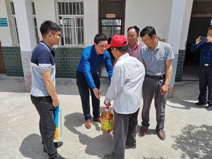6月7日上午,安徽交航公司滁州時代樾府項目支部書記田龍帶隊前往滁州市定遠縣大徐村開展扶貧幫困慰問活動,并代表公司和項目部為村中貧困戶購買了米面油等生活必需品。扶貧幫困之舉受到當?shù)卣嚓P(guān)部門的高度贊賞與肯定。