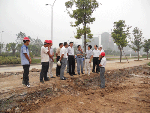 汪建中副市長一行查看我工地現(xiàn)場,并與項目經(jīng)理朱文明親切交談,仔細(xì)詢問了工程進(jìn)度情況及現(xiàn)場需解決的問題。汪副市長指出政務(wù)中心廣場工程是滁州市重點竣工項目之一,為迎接農(nóng)歌會展滁州新形象,因而工程任務(wù)重、責(zé)任大,各部門人員要高度重視,加快施工進(jìn)度,確保農(nóng)歌會前順利完工。