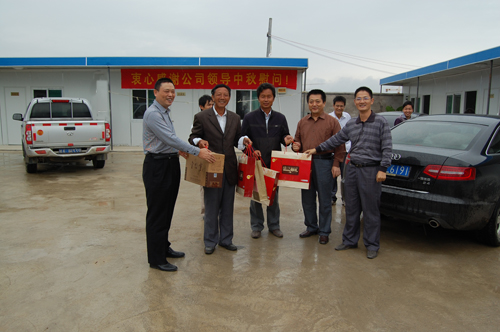 2010年9月22日,公司總經(jīng)理、黨委書(shū)記李世龍,黨委副書(shū)記、工會(huì)主席、紀(jì)委書(shū)記曹興堂,總經(jīng)理助理、辦公室主任紀(jì)愛(ài)國(guó)等一行到滁州市政務(wù)中心廣場(chǎng)工程施工工地檢查工作,親切慰問(wèn)節(jié)日期間堅(jiān)守工作崗位的員工,親手送上了滿含祝福的中秋月餅,與大家共度中秋佳節(jié),誠(chéng)摯祝福大家度過(guò)一個(gè)安全、快樂(lè)的節(jié)日。