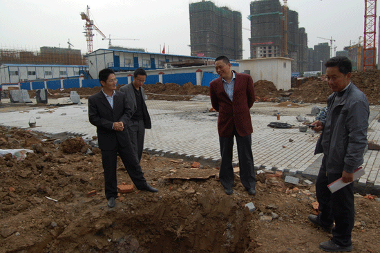 2010年11月15日,公司總經理、黨委書記李世龍,公司總經理助理、辦公室主任紀愛國一行蒞臨滁州市政務中心廣場工程檢查工作。