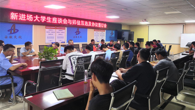 9月2日18:30,滁州項目開展大學生座談會暨導師帶徒活動,組織9對師徒簽署師徒協(xié)議。項目部全體黨員、青年骨干及新入職大學生。會議由支部書記田龍主持。