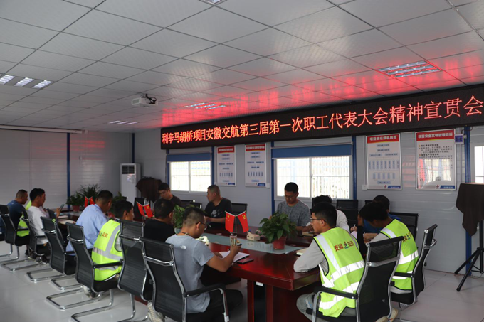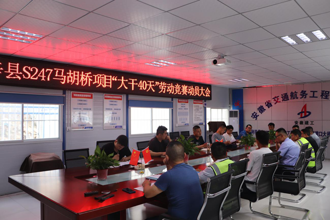 5月23日下午6點(diǎn),利辛縣S247馬胡橋項(xiàng)目部組織全體職工召開安徽交航三屆一次職代會精神宣貫暨“大干40天”勞動競賽動員專題會議。會上認(rèn)真?zhèn)鬟_(dá)學(xué)習(xí)了黨委副書記、總經(jīng)理方申柱作的職代會報告,讓未參加職代會的同事了解交航公司過去一年的發(fā)展情況以及未來企業(yè)發(fā)展規(guī)劃。