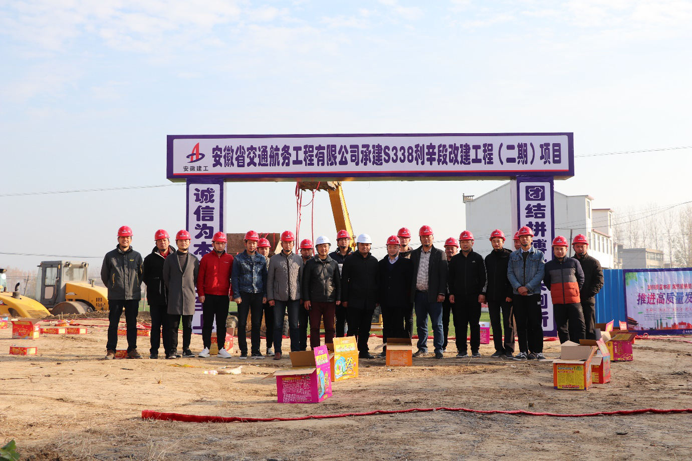 2019年11月29日9時(shí)18分,S338利辛段道路改建工程二期舉行開(kāi)工儀式,利辛縣交通局、利辛安建公司、監(jiān)理單位、三檢單位、項(xiàng)目部全體人員及分包單位人員參加開(kāi)工儀式。