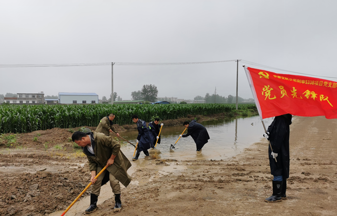 在項(xiàng)目黨支部正確的指導(dǎo)下,黨員先鋒隊(duì)、青年突擊隊(duì)身著雨衣,腳穿雨靴,手持鐵鍬挖溝排澇。經(jīng)過(guò)一個(gè)半小時(shí)的突擊挖槽,最終疏通了路基兩側(cè)積水。此次S338項(xiàng)目部黨員先鋒隊(duì)和青年突擊隊(duì)的自救行動(dòng)充分展現(xiàn)了一個(gè)黨員就是一面旗子,一個(gè)支部就是一個(gè)戰(zhàn)斗堡壘,彰顯了黨團(tuán)先鋒隊(duì)的形象。