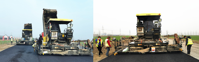 在攤鋪過(guò)程中混合料采用集中廠(chǎng)拌法,兩臺(tái)攤鋪機(jī)成梯隊(duì)作業(yè)。攤鋪工程中嚴(yán)格按照標(biāo)準(zhǔn)化施工,組織攤鋪與碾壓的銜接。項(xiàng)目部人員對(duì)攤鋪的溫度、橫坡度、寬度、平整度等相關(guān)技術(shù)指標(biāo)及時(shí)進(jìn)行跟蹤檢測(cè),確保成型路面各項(xiàng)技術(shù)指標(biāo)符合設(shè)計(jì)及規(guī)范要求。