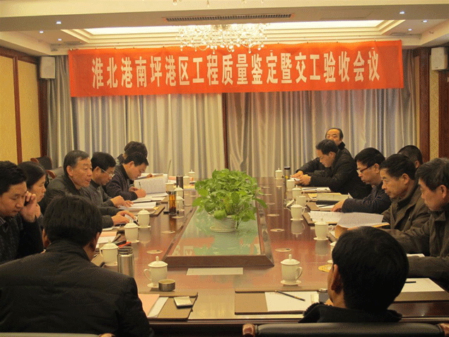 2013年12月31日,由交航公司承建的淮北港南坪港區(qū)工程交工質(zhì)量鑒定會議在淮北召開,會議有安徽省交通質(zhì)監(jiān)局組織主持;安徽省交通質(zhì)監(jiān)局副局長馬中南、水管處處長周基群,安徽港投集團(tuán)副總王燦、總助高勝,項目辦主任汪能文,交航公司副總侯力、工程部經(jīng)理李立柱及請聘專家等參加了會議。