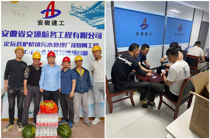 日前,定遠(yuǎn)縣爐橋鎮(zhèn)污水處理廠及管網(wǎng)工程項(xiàng)目部,給“五一”期間頭頂烈日、堅(jiān)守崗位的項(xiàng)目職工及民工兄弟送去慰問(wèn)品,對(duì)他們的堅(jiān)持和奉獻(xiàn)表示感謝,并組織開(kāi)展摜蛋比賽。