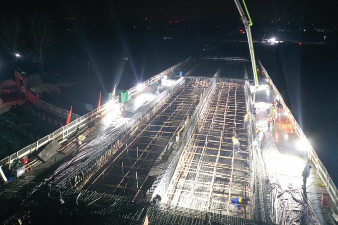 在澆筑施工的19個小時里,項目全體職工充分發(fā)揚“學(xué)黨史、保安康、搶工期、爭一流”的勞動競賽精神和“不怕苦、不懼難、敢拼搏、愿奉獻”的團隊精神,統(tǒng)籌協(xié)調(diào)、頑強拼搏,為施工順利完成提供了有力保障。此次施工完成也標志著邵渡口大橋建設(shè)進入嶄新階段,為項目如期竣工通車打下了堅實基礎(chǔ)。