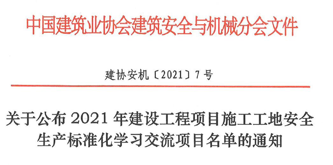 近日,中國建筑業(yè)協(xié)會建筑安全與機械分會公布了2021年在全國范圍組織學(xué)習(xí)交流的建設(shè)工程項目施工安全生產(chǎn)標(biāo)準(zhǔn)化工地名單,安徽交航公司承建的滁州市北京城房·時代莊園項目位列其中,獲評“全國建設(shè)工程項目施工工地安全生產(chǎn)標(biāo)準(zhǔn)化學(xué)習(xí)交流項目”。