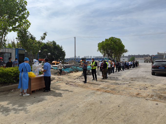 “感謝你們交航項(xiàng)目在工程建設(shè)這么忙碌的情況下,還抽調(diào)人員支援我鄉(xiāng)核酸檢測工作,這是對我們疫情防控工作最大的支持。”4月21日下午,嚴(yán)店鄉(xiāng)衛(wèi)生院伊院長與核酸檢測志愿者們說到。面對肥西縣嚴(yán)店鄉(xiāng)區(qū)域在建項(xiàng)目多、所有參建項(xiàng)目人員一周三檢及醫(yī)護(hù)檢測人員不足的情況下,引江濟(jì)淮項(xiàng)目部積極整合自身資源主動(dòng)擔(dān)當(dāng)作為,第一時(shí)間抽調(diào)1名具有護(hù)士執(zhí)業(yè)資格證人員和1名核酸采集掃碼人員,并將新時(shí)代文明實(shí)踐點(diǎn)設(shè)置為核酸檢測點(diǎn),在嚴(yán)店鄉(xiāng)衛(wèi)生院指導(dǎo)下,承擔(dān)項(xiàng)目工地自檢工作,配合屬地政府開展核酸采集工作。截至目前,已完成核酸采集8679人次,切實(shí)為屬地政府減輕了檢測壓力。