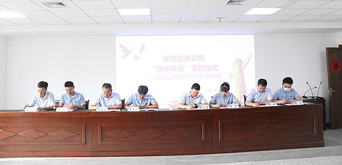 4對師徒代表現(xiàn)場簽訂“導(dǎo)師帶徒”協(xié)議