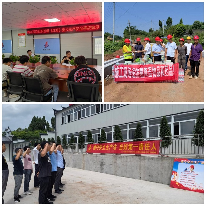 加強(qiáng)安全管理,增強(qiáng)安全意識。項目部全面落實安全生產(chǎn)責(zé)任制度,嚴(yán)格實行領(lǐng)導(dǎo)帶班制度,加強(qiáng)生產(chǎn)過程中安全隱患排查工作,截至目前項目未發(fā)生安全事故。依據(jù)項目制定的安全檢查制度,開展了日常巡查、定期檢查、專項巡查、節(jié)前專項檢查及節(jié)后復(fù)工專項檢查等。今年以來項目部累計開展安全進(jìn)場教育145人次;安全技術(shù)交底25次;共下發(fā)37份安全隱患整改通知單,完成86條安全隱患的整改工作;開展“安全警示日”、“安全生產(chǎn)月”、“防災(zāi)減災(zāi)”等專題教育以及系列活動。項目部調(diào)整施工時間錯開高溫時間段,在施工現(xiàn)場配備綠豆、防暑降溫藥品,采取一系列措施預(yù)防工人中暑,有效應(yīng)對夏季高溫天氣。