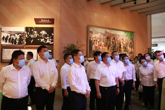 為慶祝中國共產(chǎn)黨成立100周年,貫徹落實(shí)黨史學(xué)習(xí)教育工作要求,5月11日下午,安徽交航機(jī)關(guān)黨支部、引江濟(jì)淮項(xiàng)目黨支部、聯(lián)合開展黨史學(xué)習(xí)教育主題黨日活動(dòng)。公司領(lǐng)導(dǎo)班子成員,機(jī)關(guān)全體黨員、引江濟(jì)淮項(xiàng)目全體黨員以及職工群眾共120余人前往渡江戰(zhàn)役紀(jì)念館,重溫入黨誓詞,緬懷革命先烈豐功偉績,聆聽黨委書記、董事長、總經(jīng)理方申柱講黨課。