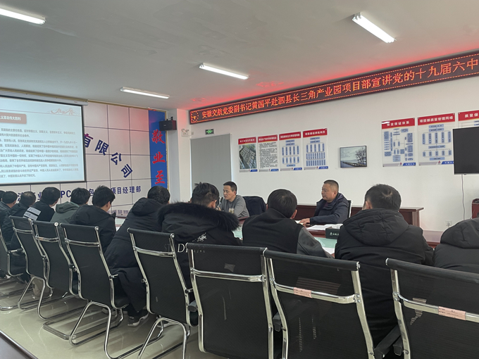 12月30日下午,公司黨委副書記、工會(huì)主席黃國(guó)平赴泗縣長(zhǎng)三角項(xiàng)目部宣講黨的十九屆六中全會(huì)精神。泗縣長(zhǎng)三角項(xiàng)目全體職工參加會(huì)議。