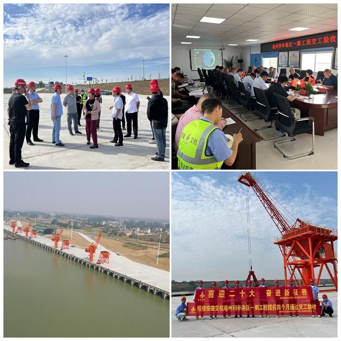 亳州利辛港區(qū)一期工程自2021年12月6日開工建設(shè)以來,受到社會各界高度關(guān)注。在利辛縣委縣政府和亳州市交通運輸局的關(guān)心和支持下,在參建各方的努力下,經(jīng)過10個月緊張有序地建設(shè),提前4個月交工驗收。施工期間,面對新冠疫情造成工期滯后的不利影響,項目部不等不靠、主動作為,緊密結(jié)合公司勞動競賽主題活動,積極動員一線職工卯足干勁,大干特干,積極發(fā)揚“白+黑”、“5+2”的苦干實干精神,自我加壓,爭分奪秒搶工期,加班加點趕進度,保障了項目建設(shè)的高效順利實施,按照既定節(jié)點圓滿完成了項目建設(shè)任務(wù),以優(yōu)異成績迎接黨的二十大勝利召開!