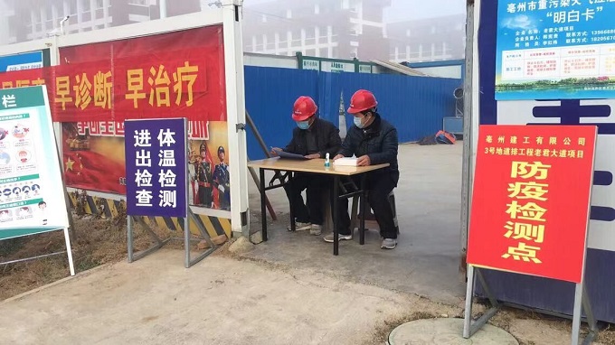除了儲備防疫物資以外,亳州2號3號地塊項目部內部建立疫情檢查制度,每天都安排專門人員進行值班,對項目部人員體溫和健康狀況進行監(jiān)測,對項目部內部進行消毒,同時對項目部庫存防范疫情物資進行檢查,保證正常使用。在施工現(xiàn)場設立疫情監(jiān)測點,所有進出人員都要進行體溫監(jiān)測。要求各班組對進場的民工進行安全監(jiān)測,定時對班組內進行消毒,保證人員健康,保障工作順利開展。
