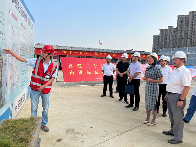 丁金穎一行在項(xiàng)目施工現(xiàn)場(chǎng)實(shí)地查看了項(xiàng)目建設(shè)情況,認(rèn)真聽(tīng)取了關(guān)于工程概況、施工進(jìn)度及安全生產(chǎn)工作情況的匯報(bào),并現(xiàn)場(chǎng)就工程安全、質(zhì)量等方面提供指導(dǎo)意見(jiàn)。