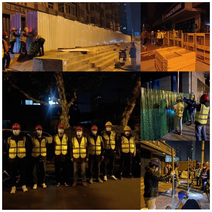 2022年10月19日晚21時(shí)許,安徽交航公司位于合肥市瑤海區(qū)的兩個(gè)項(xiàng)目“瑤海區(qū)板橋河初期雨水徑流污染控制工程項(xiàng)目”和“瑤海區(qū)排水系統(tǒng)雨污混接改造工程二期項(xiàng)目”接到建設(shè)單位通知,配合區(qū)政府在瑤海全區(qū)進(jìn)行強(qiáng)化疫情防控有關(guān)措施,要求項(xiàng)目部立即組織人員、物資對(duì)屬地小區(qū)開展應(yīng)急封控工作。項(xiàng)目部積極響應(yīng)政府號(hào)召,立即組織精干人員,成立疫情防控應(yīng)急小組,迅速調(diào)撥材料、安排車輛。23時(shí)30分,接到具體任務(wù)后,項(xiàng)目部全體人員第一時(shí)間趕往板橋河恢復(fù)樓和嘉山路片區(qū),對(duì)沿街商鋪小區(qū)進(jìn)行圍擋封控,至20日清晨6時(shí)30分順利完成各項(xiàng)工作任務(wù)。