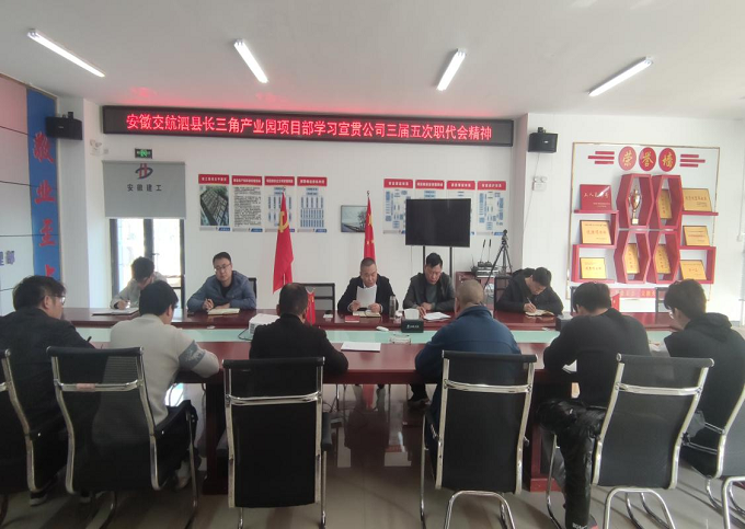 3月5日下午,泗縣長(zhǎng)三角產(chǎn)業(yè)園項(xiàng)目召開專題會(huì)議,深入學(xué)習(xí)領(lǐng)會(huì)集團(tuán)和公司職代會(huì)上的講話和報(bào)告精神。會(huì)議強(qiáng)調(diào),2023年是全面貫徹落實(shí)黨的二十大精神,以新發(fā)展理念引領(lǐng)安徽交航高質(zhì)量發(fā)展的關(guān)鍵一年,項(xiàng)目部要強(qiáng)化基礎(chǔ)管理,提高施工建設(shè)水平,加大資金回收力度,保持“拼”的姿態(tài)、鼓足“搶”的干勁、弘揚(yáng)“嚴(yán)”的作風(fēng),努力打造“六個(gè)一流”標(biāo)桿項(xiàng)目。