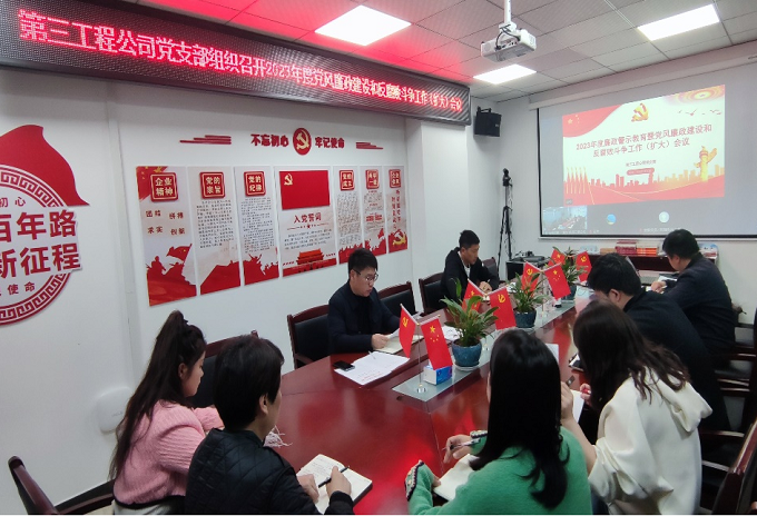 3月24日下午,第三工程公司召開2023年黨風(fēng)廉政建設(shè)和反腐敗工作會(huì)議,全面總結(jié)2022年黨風(fēng)廉政建設(shè)和反腐敗工作,對2023年重點(diǎn)工作進(jìn)行部署。會(huì)議由黨支部書記、副總經(jīng)理顏海峰主持。
