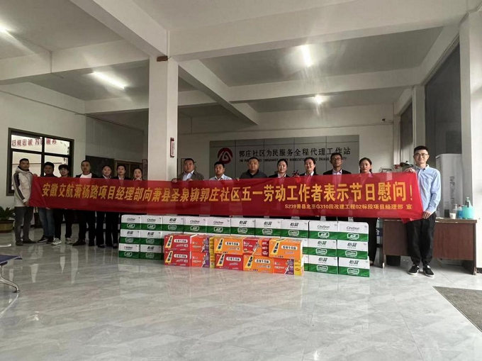 5月3日,蕭楊路項(xiàng)目赴蕭縣圣泉鎮(zhèn)郭莊社區(qū)開展“五一”勞動節(jié)慰問活動,向社區(qū)勞動者表示親切慰問。