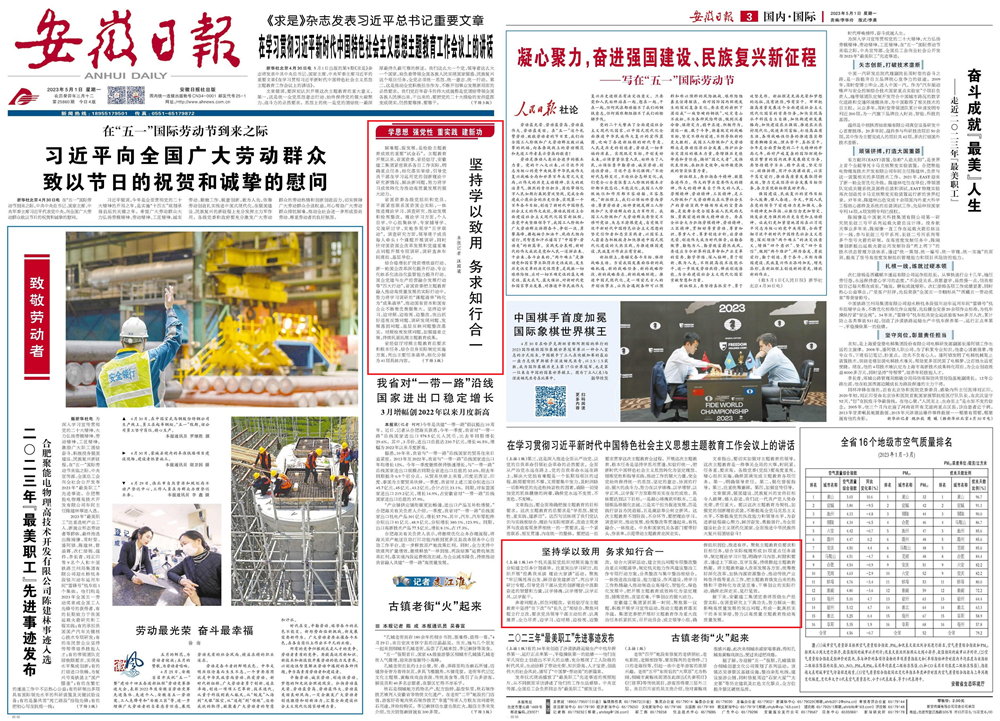 5月1日,安徽日報以《堅持學(xué)以致用 務(wù)求知行合一》為題關(guān)注報道安徽建工集團主題教育開展情況。以下是報道部分內(nèi)容:
