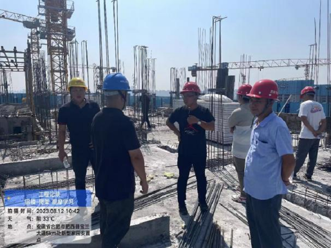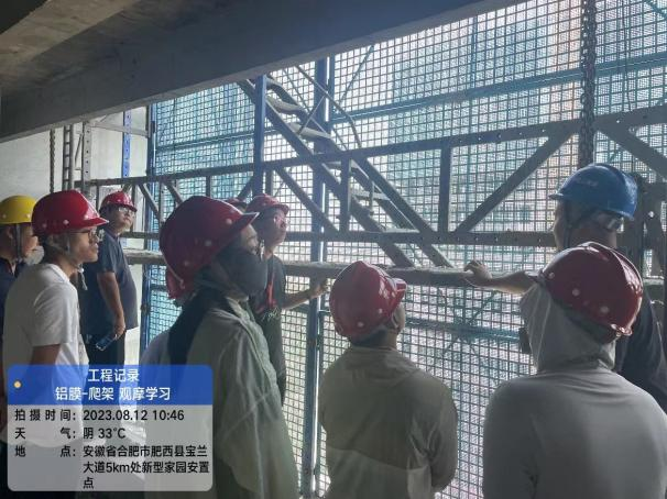 8月12日,項(xiàng)目部組織新員工前往中建五局新型家園項(xiàng)目學(xué)習(xí)鋁模板、爬架等工藝。