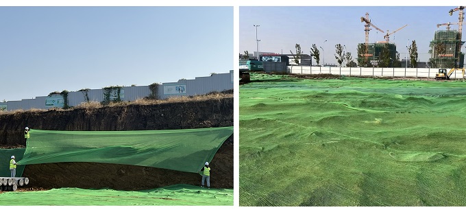 施工過程中,項目部以精細化管理為契機,積極推廣使用節(jié)能新產(chǎn)品,助力節(jié)能減排、降本增效。一是嚴格落實綠色施工理念,合理布置現(xiàn)場規(guī)劃,統(tǒng)籌考慮臨時設(shè)施和永久性設(shè)施,有效優(yōu)化施工工序,將施工過程中用到的部分臨時設(shè)施與永久性設(shè)施一次性施工,達到降低碳排放、縮短工期、減少資源浪費的目的。二是嚴格按照標(biāo)準(zhǔn)要求配置現(xiàn)場設(shè)備,建設(shè)廢水收集系統(tǒng),配置沖洗平臺、噴淋系統(tǒng)(圍擋、高桿、塔吊)、作業(yè)區(qū)霧炮、大陽能路燈等設(shè)備,為項目綠色施工提供有力保障;三是嚴格執(zhí)行裸土區(qū)域全覆蓋舉措,組織項目部管理人員對土方作業(yè)裸土區(qū)域鋪設(shè)防塵網(wǎng),累計鋪設(shè)面積達到3.4萬余平,有效降低揚塵污染。