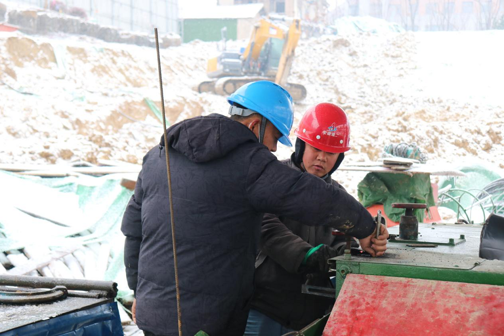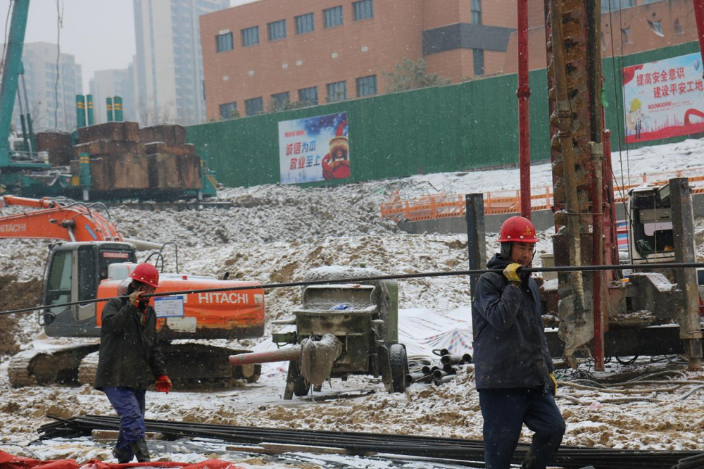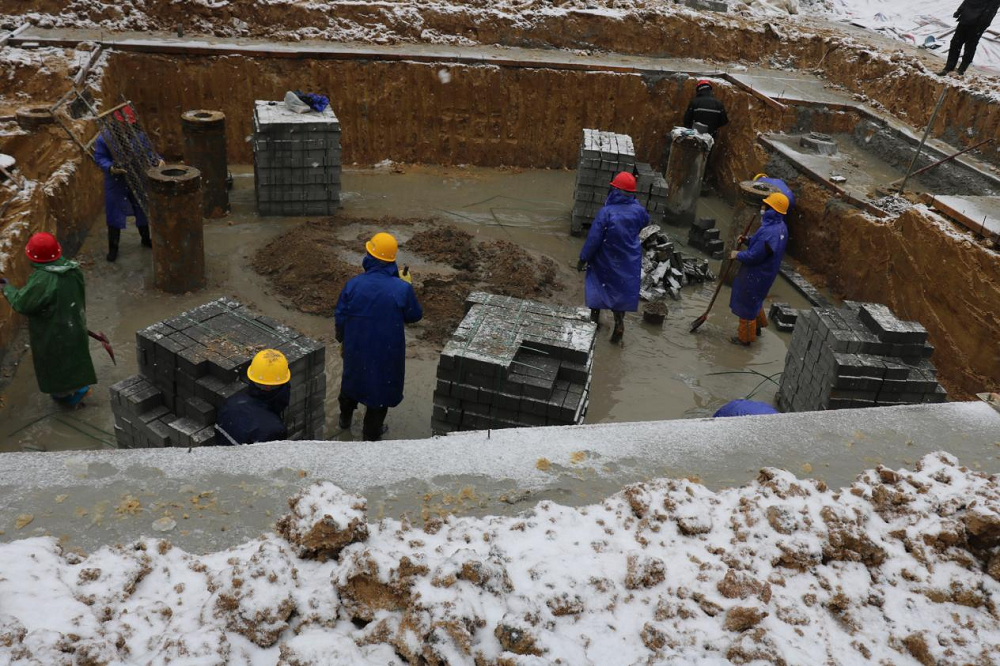 項目部結(jié)合實際開展安全施工教育培訓(xùn),有效推進(jìn)現(xiàn)場樁芯鋼筋加工制作、礎(chǔ)磚胎膜抹灰、砌筑、道路鋪設(shè)磚渣、地庫承臺樁芯澆筑等生產(chǎn)工作,確保降雪降溫不降產(chǎn)。