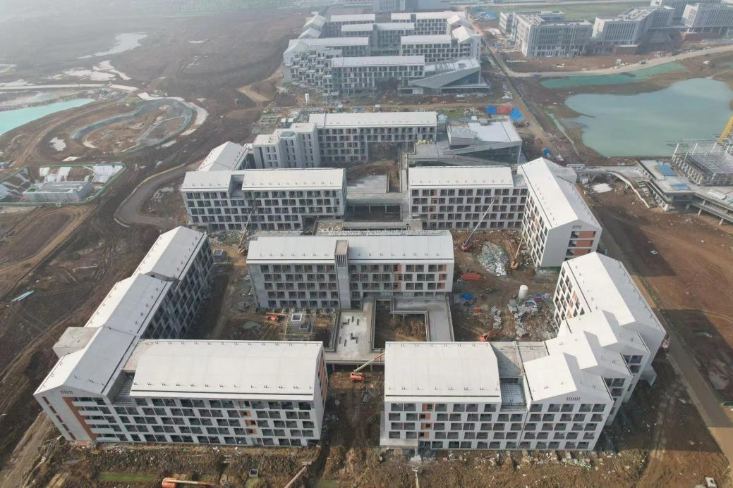安徽醫(yī)科大學(xué)新醫(yī)科中心(新校區(qū))一期項(xiàng)目一批次建安工程施工及總承包服務(wù)項(xiàng)目位于位于合肥市肥西縣獨(dú)秀園與李陵山路交口東北角,建筑面積約20萬(wàn)㎡,合同額約3.7億元。主要建設(shè)內(nèi)容包括D-1生活組團(tuán)、D-2生活組團(tuán)等土建、裝飾和安裝工程。自復(fù)工以來(lái),項(xiàng)目緊鑼密鼓推進(jìn)施工任務(wù),目前主體結(jié)構(gòu)已全部完成,外墻裝飾完成90%,內(nèi)裝飾瓷磚完成95%,機(jī)電安裝完成80%,累計(jì)完成產(chǎn)值3.05億元。項(xiàng)目建設(shè)過(guò)程中克服了合同節(jié)點(diǎn)時(shí)間緊、施工任務(wù)艱巨等諸多困難。項(xiàng)目建成后,將對(duì)接長(zhǎng)三角一體化發(fā)展戰(zhàn)略,打造“政產(chǎn)學(xué)研用”一體化新校區(qū),形成“學(xué)科+產(chǎn)業(yè)+專業(yè)”的醫(yī)學(xué)科創(chuàng)集群。