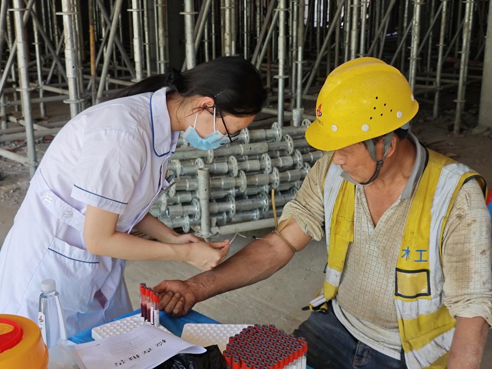 為落實(shí)安全生產(chǎn)工作要求,切實(shí)保障一線工人的身體健康,5月17日下午,商機(jī)廠租賃住房項(xiàng)目部開展了以“事情關(guān)愛農(nóng)民工,健康體檢暖人心”為主題的體檢活動(dòng),邀請(qǐng)醫(yī)護(hù)人員走進(jìn)工地,為現(xiàn)場(chǎng)工人進(jìn)行一次全面、免費(fèi)的健康檢查,用實(shí)際行動(dòng)傳遞溫暖。
