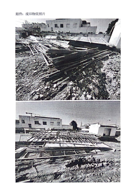 一、處置項目:黃山市徽州區(qū)城東產(chǎn)業(yè)園項目廢舊鋼筋頭約3噸,廢 舊鐵架2噸,廢舊塑料制品2噸。合肥七水廠三期項目廢舊鋼筋頭約5噸。合肥市瑤海區(qū)商機廠租賃住房項目約10噸。