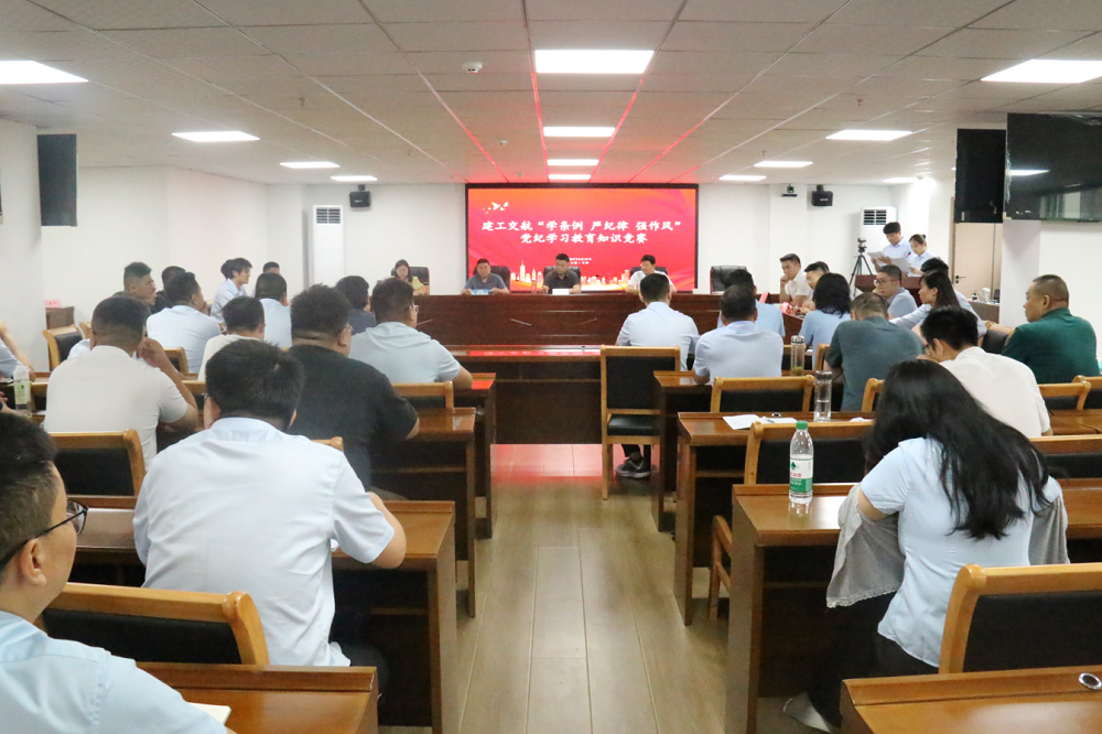 為深入推進黨紀(jì)學(xué)習(xí)教育主題活動,教育引導(dǎo)黨員干部做到學(xué)紀(jì)、知紀(jì)、明紀(jì)、守紀(jì),以競賽形式檢驗學(xué)習(xí)成果,6月19日,建工交航開展“學(xué)條例 嚴(yán)紀(jì)律 強作風(fēng)”黨紀(jì)學(xué)習(xí)教育知識競賽。公司黨委副書記、總經(jīng)理李登祥出席活動,黨委委員、副總經(jīng)理、工會主席王黎明致辭。公司機關(guān)黨總支書記、財務(wù)資產(chǎn)部部長李愛平、紀(jì)檢室負責(zé)人李衍、團委書記李鳳祥及各代表隊領(lǐng)隊、隊員共計50余人參與此次活動。