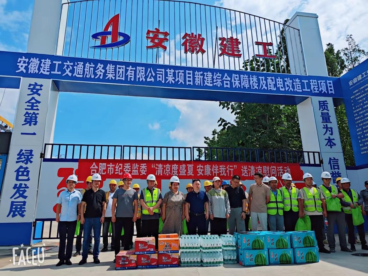 7月25日下午,合肥市紀(jì)委常委、秘書長(zhǎng)、監(jiān)委委員韋晉峰,市紀(jì)委監(jiān)委機(jī)關(guān)黨委專職副書記張雷,市黨風(fēng)廉政教育基地主任龐德萍一行深入建工交航城建分公司位于瑤海區(qū)的項(xiàng)目開展“清涼度盛夏 安康伴我行”送清涼活動(dòng),為堅(jiān)守一線的職工送上防暑降溫物品。