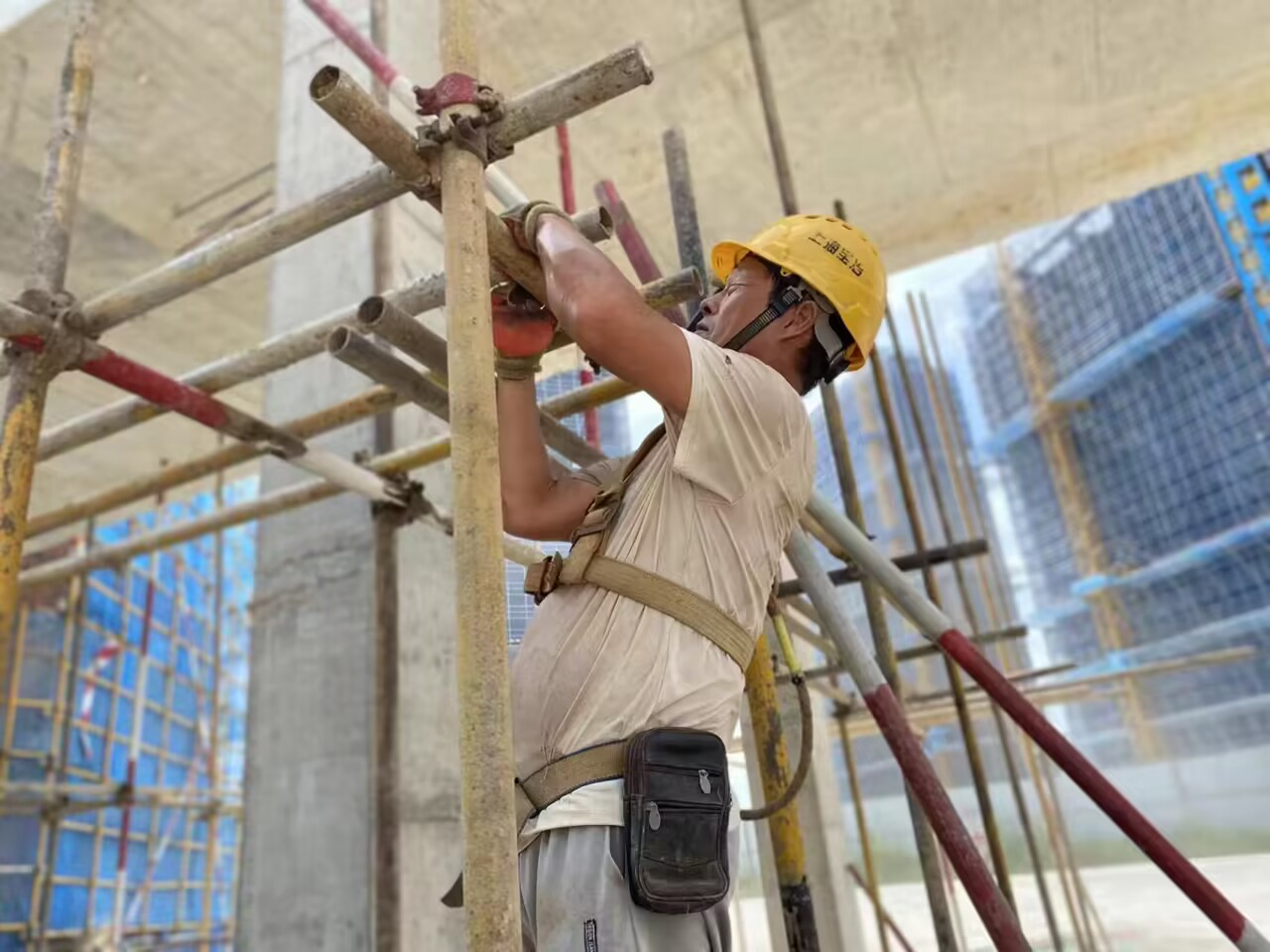 ▲合肥肥西產(chǎn)城融合項(xiàng)目-工人搭設(shè)腳手架