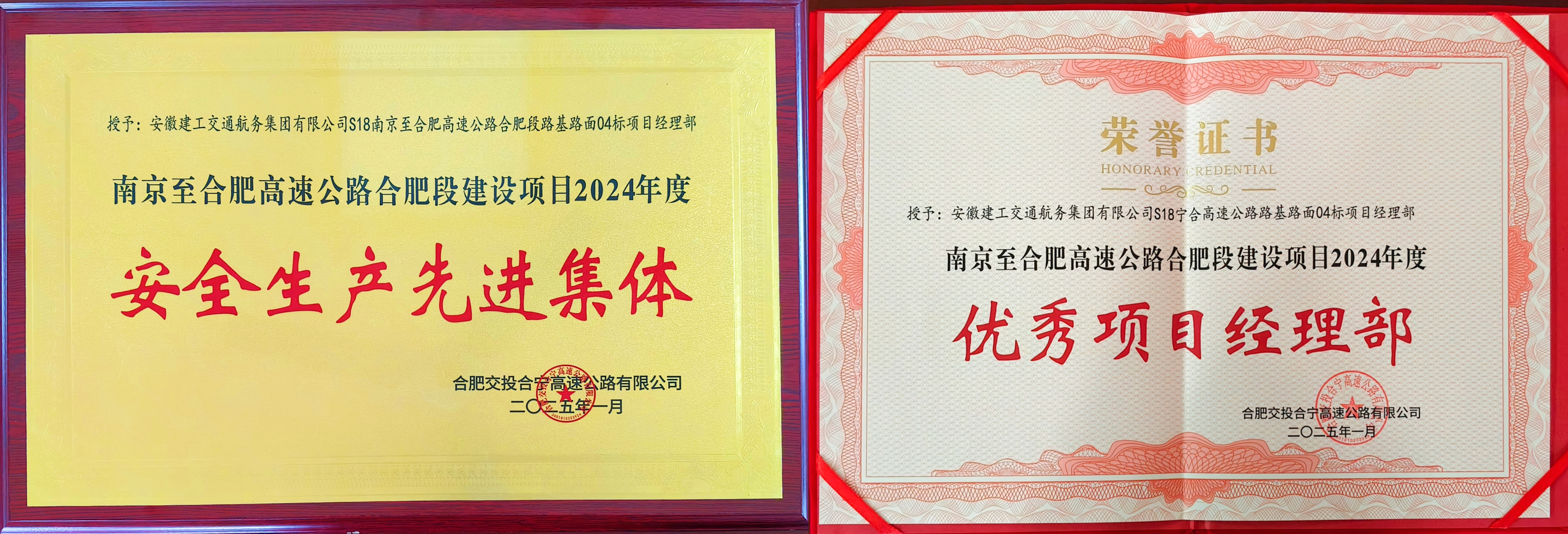 近日,S18寧合高速項目在2024年度業(yè)主單位合肥交控合寧公司綜合考評中勇奪佳績,斬獲2024度綜合考評第一名、優(yōu)秀項目經(jīng)理部、安全生產(chǎn)先進集體等多項榮譽,項目7位職工榮獲優(yōu)秀項目負責(zé)人、優(yōu)秀項目建設(shè)者、安全生產(chǎn)先進個人、優(yōu)秀勞資專管員等多項榮譽,以實際行動擦亮企業(yè)品牌。