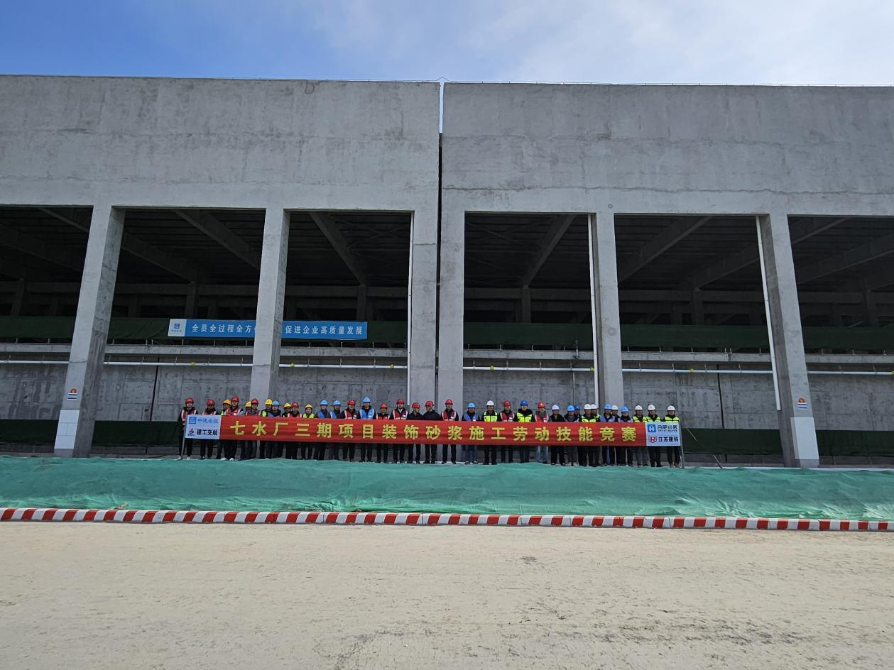 1 月 22 日上午,七水廠三期工程項目現(xiàn)場熱火朝天,一場由合肥水務(wù)集團(tuán)主辦、建工交航七水廠三期工程項目承辦的裝飾砂漿施工勞動技能競賽在此舉辦。