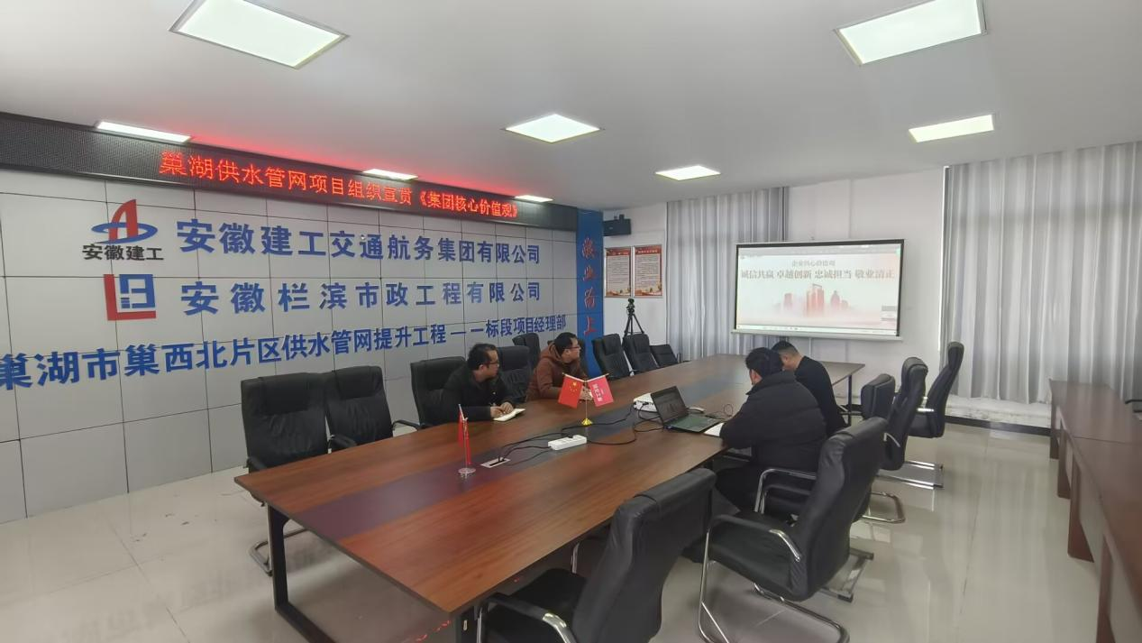 巢湖供水管道網(wǎng)項(xiàng)目召開(kāi)專(zhuān)題會(huì)議,集中學(xué)習(xí)了集團(tuán)發(fā)布的《關(guān)于開(kāi)展安徽建工集團(tuán)核心價(jià)值觀學(xué)習(xí)宣貫的通知》,鮮明解讀了“誠(chéng)信共贏 卓越創(chuàng)新 忠誠(chéng)擔(dān)當(dāng) 敬業(yè)清正”核心要義。