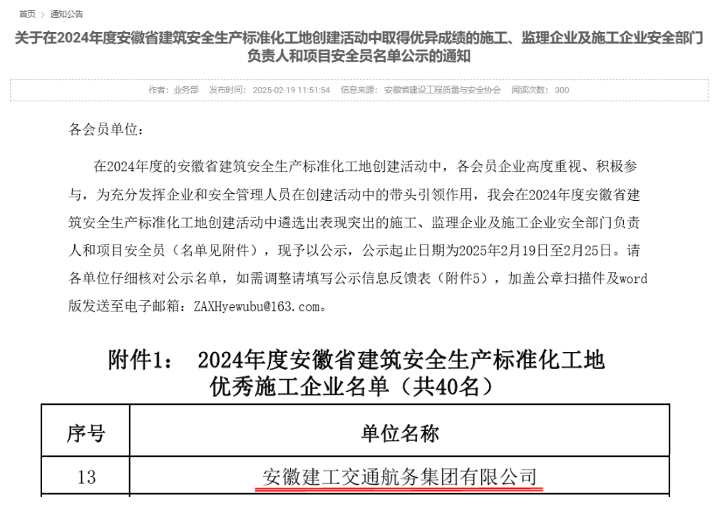 近日,安徽省建筑安全生產(chǎn)標準化工地創(chuàng)建活動結果揭曉,安徽建工交通航務集團有限公司憑借扎實的安全管理,斬獲多項殊榮。