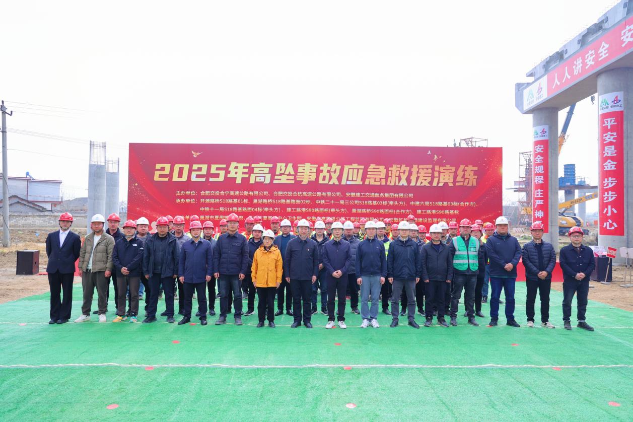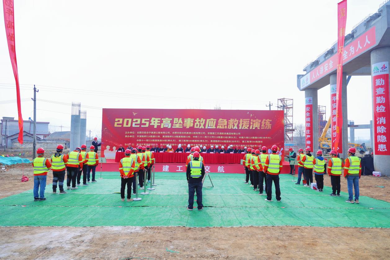 2 月 28 日上午,巢湖市夏閣鎮(zhèn) S328 省道交蕪合高速夏閣東樞紐現(xiàn)澆支架 E 匝道處,一場(chǎng)實(shí)戰(zhàn)化的高處墜落事故應(yīng)急救援演練拉開帷幕。此次演練由合肥交投合寧高速公路有限公司、合肥交投合杭高速公路有限公司、安徽建工交通航務(wù)集團(tuán)有限公司主辦,建工交航黨委委員、副總經(jīng)理邢磊,安全環(huán)保監(jiān)察部部長朱云珍參加演練活動(dòng),并發(fā)表致辭與點(diǎn)評(píng)。