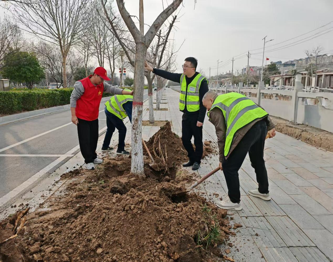 活動(dòng)現(xiàn)場(chǎng),黨員干部們熱情高漲、干勁十足。大家分工協(xié)作,揮鍬培土、扶苗圍堰、提水澆灌,每一道工序都一絲不茍。經(jīng)過(guò)數(shù)小時(shí)的辛勤勞動(dòng),共栽培、修復(fù)樹(shù)木20余株,為初春的大地增添了一抹盎然綠意。