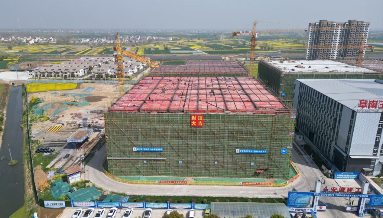 4 月 2 日,隨著最后一方混凝土澆筑完成,王家壩紅亮和美鄉(xiāng)村振興產(chǎn)業(yè)項(xiàng)目 5# 廠房主體結(jié)構(gòu)順利封頂,標(biāo)志著阜南縣鄉(xiāng)村振興重點(diǎn)工程取得階段性勝利。
