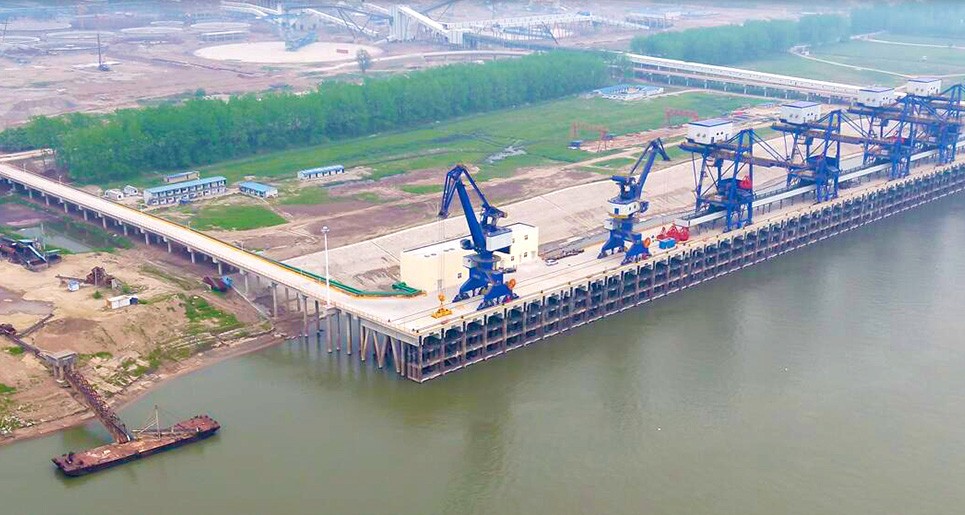 該工程碼頭采用高樁梁板式結(jié)構(gòu) 型式,新建 4 個(gè) 5000t 級(jí)(水工結(jié)構(gòu) 兼顧 10000t 級(jí))散貨、件雜貨泊位以 及相應(yīng)的配套設(shè)施,碼頭運(yùn)營、輔助 生產(chǎn)運(yùn)營所需的設(shè)備設(shè)施等。前方作 業(yè)平臺(tái)采用連片式布置。結(jié)合工藝設(shè) 備的要求,碼頭結(jié)構(gòu)長度為 510m,寬 度為 25m。取水設(shè)施取水量 250000t/ d;排水設(shè)施排水量 138000t/d。