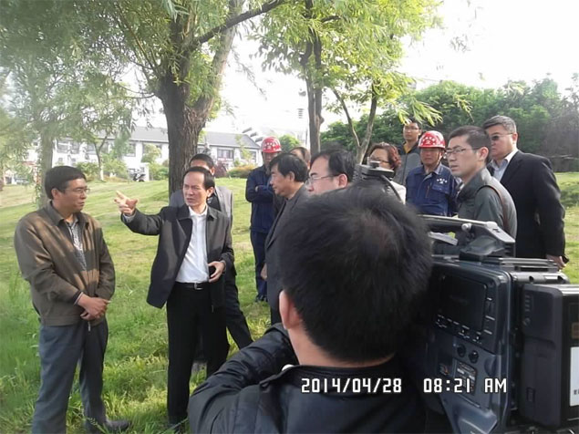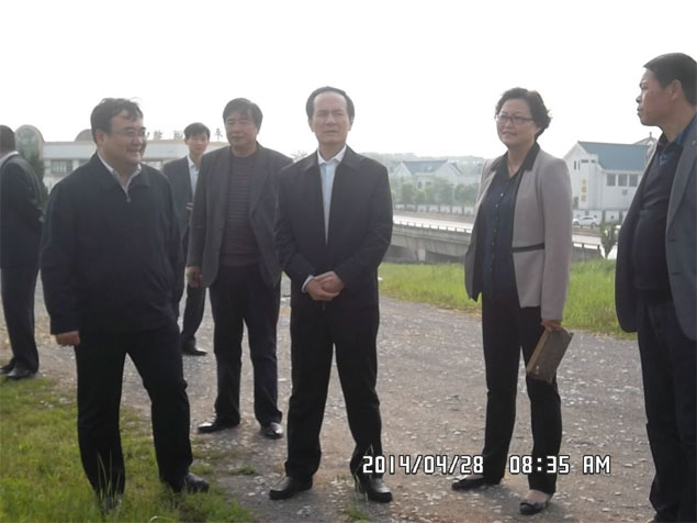 2014年4月28日,池州市市委書記陳強(qiáng)率領(lǐng)市委常委副市長嚴(yán)琛、建委主任賈瑄 、重點(diǎn)局局長方斌等領(lǐng)導(dǎo)蒞臨清溪河工程現(xiàn)場(chǎng)進(jìn)行調(diào)研,項(xiàng)目經(jīng)理黃建海向陳書記一行詳細(xì)介紹了清溪河工程的進(jìn)展情況,公司1600船舶進(jìn)駐平天湖后的施工工藝與方案。