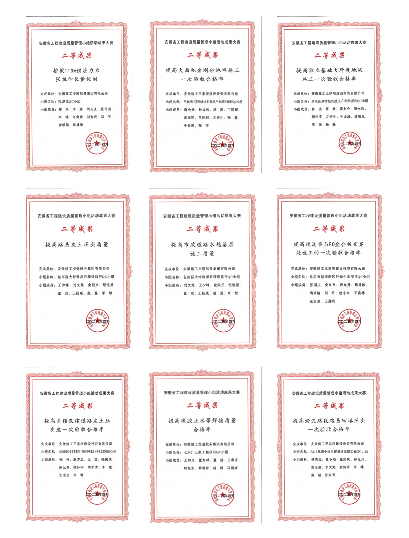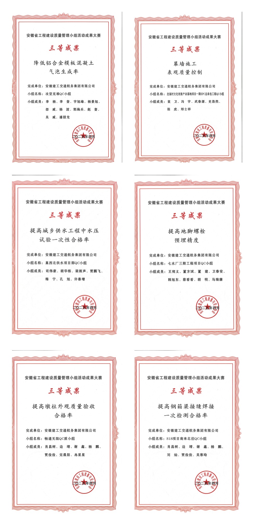 近日,2025 年安徽省工程建設 QC 小組成果大賽評選結果揭曉。建工交航斬獲 2 項省級一等獎、9項省級二等獎、14項省級三等獎。